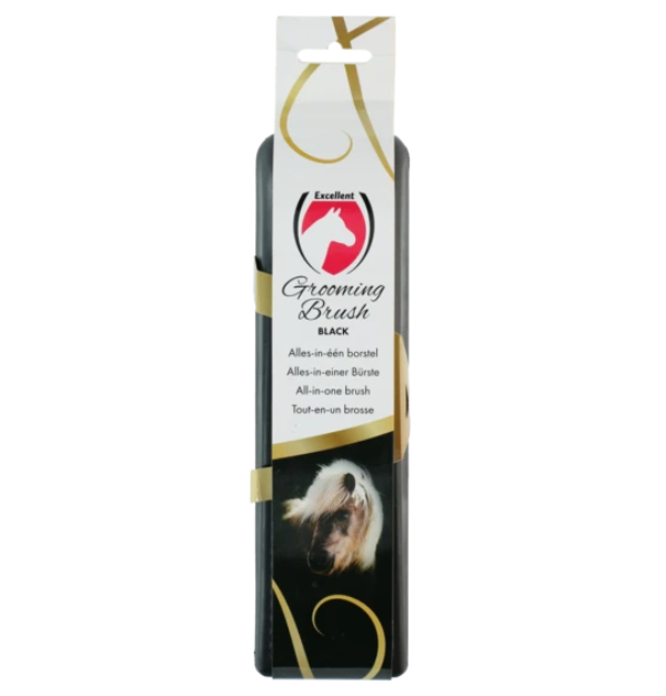Deze multifunctionele borstel verwijdert eenvoudig losse haren van het paard. Door de nopjes wordt tegelijkertijd de huid gemasseerd.