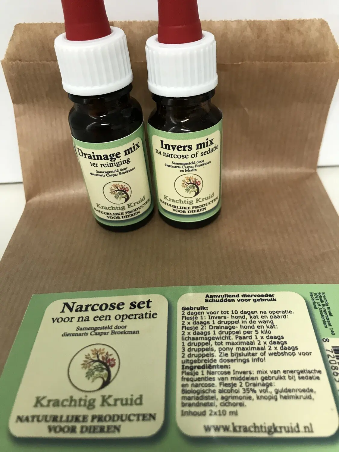 Flesje 2: Drainage- hond en kat: 2 x daags 1 druppel per 5 kilo lichaamsgewicht. Paard 1 x daags 1 druppel, tot maximaal 2 x daags 3 druppels, pony maximaal 2 x daags 2 druppels