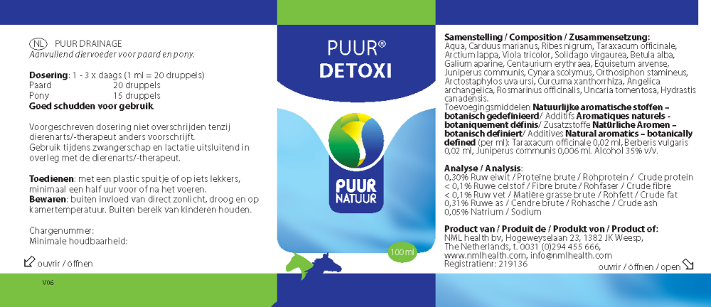 Wanneer PUUR Drainage wordt gegeven als reinigingskuur, drainagekuur, is de duur van de behandeling ongeveer 3 ร  4 weken. Er wordt geadviseerd om twee keer per jaar een reinigingskuur te geven. Ter ondersteuning van het immuunsysteem. Wanneer dit product langere tijd wordt gegeven is het raadzaam om na 6 tot 8 weken een stopweek in te lassen. Zodoende kan na de stopweek de โ€˜prikkelโ€™ opnieuw worden aangeboden. Begin zo mogelijk vroeg in het seizoen (februari/maart) met het geven van de druppels.
