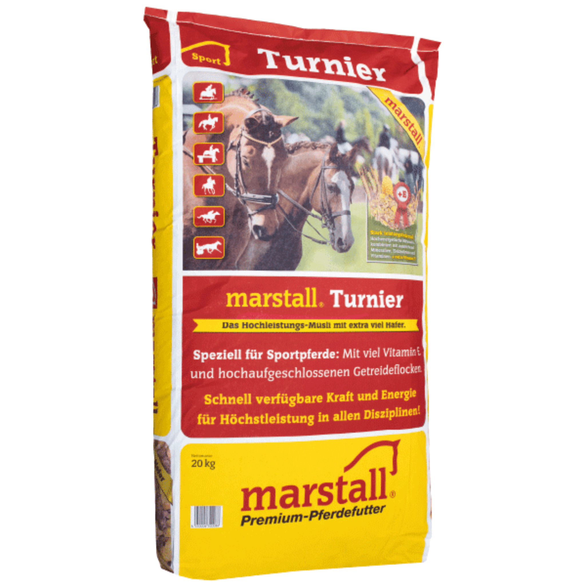 Marstall Turnier: directe-energie-muesli voor power als het er om spant! Met hoog aandeel haver voor snelle energie. Ontsloten gerst en maïs voor lichtverteerbare, langdurigere energietoevoer en uithoudingsvermogen. Speciaal aangepaste hoge gehaltes aan vitaminen (extra dosering vitamine E), mineralen en elektrolyten voor piekbelastingen.