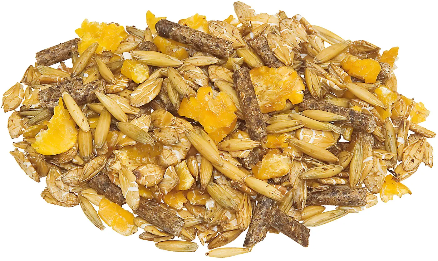 Haver, gerstvlokken, maïsvlokken, appelpulp, haverzemelen, tarwegrieszemelen, melasse, bietenpulp, tarwezemelen, calciumcarbonaat, dicalciumfosfaat, natriumchloride, speciale vitaminen- en sporenelementenpremix (0,8%)